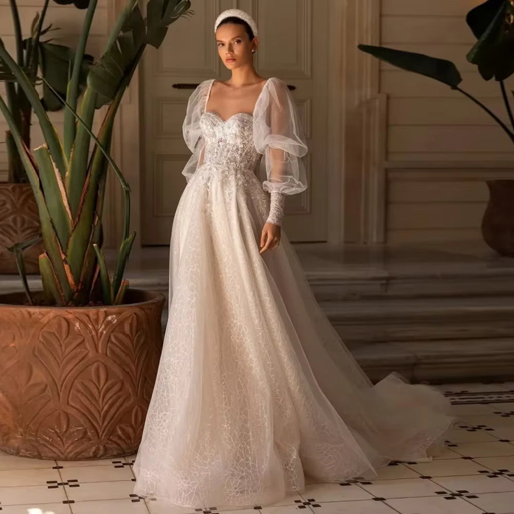Make a statement on your wedding day with our detachable long sleeves tulle dress, featuring a sweetheart neckline and intricate vintage beading. This elegant gown offers timeless charm and versatile style, perfect for a graceful, unforgettable look.