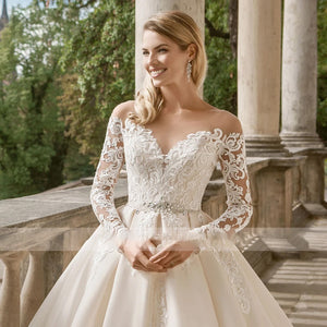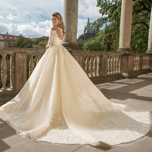Elegant A-Line Long Sleeve Lace Vintage Wedding Dress Luxury Court Train Bridal Gown