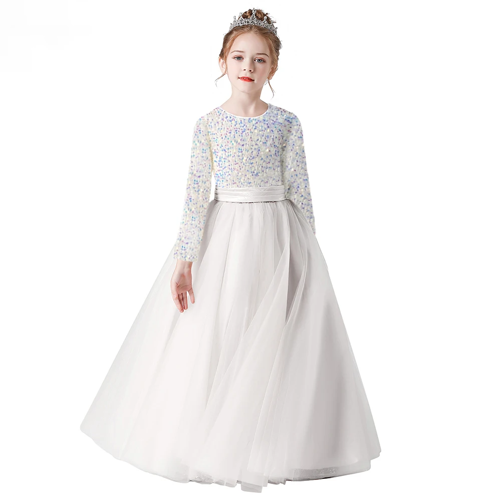 Sparkling Pageant Party Princess Gown Long Sleeve Flower Girls Dress