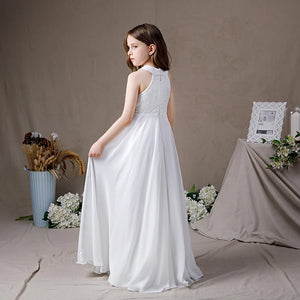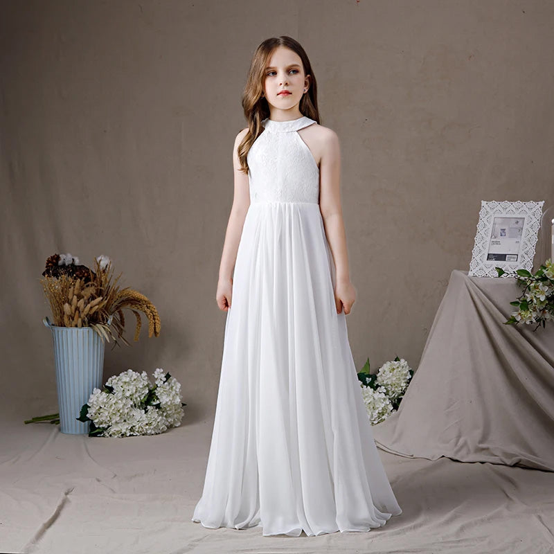 Lace Chiffon Sleeveless Halter Flower Girl First Communion Dress