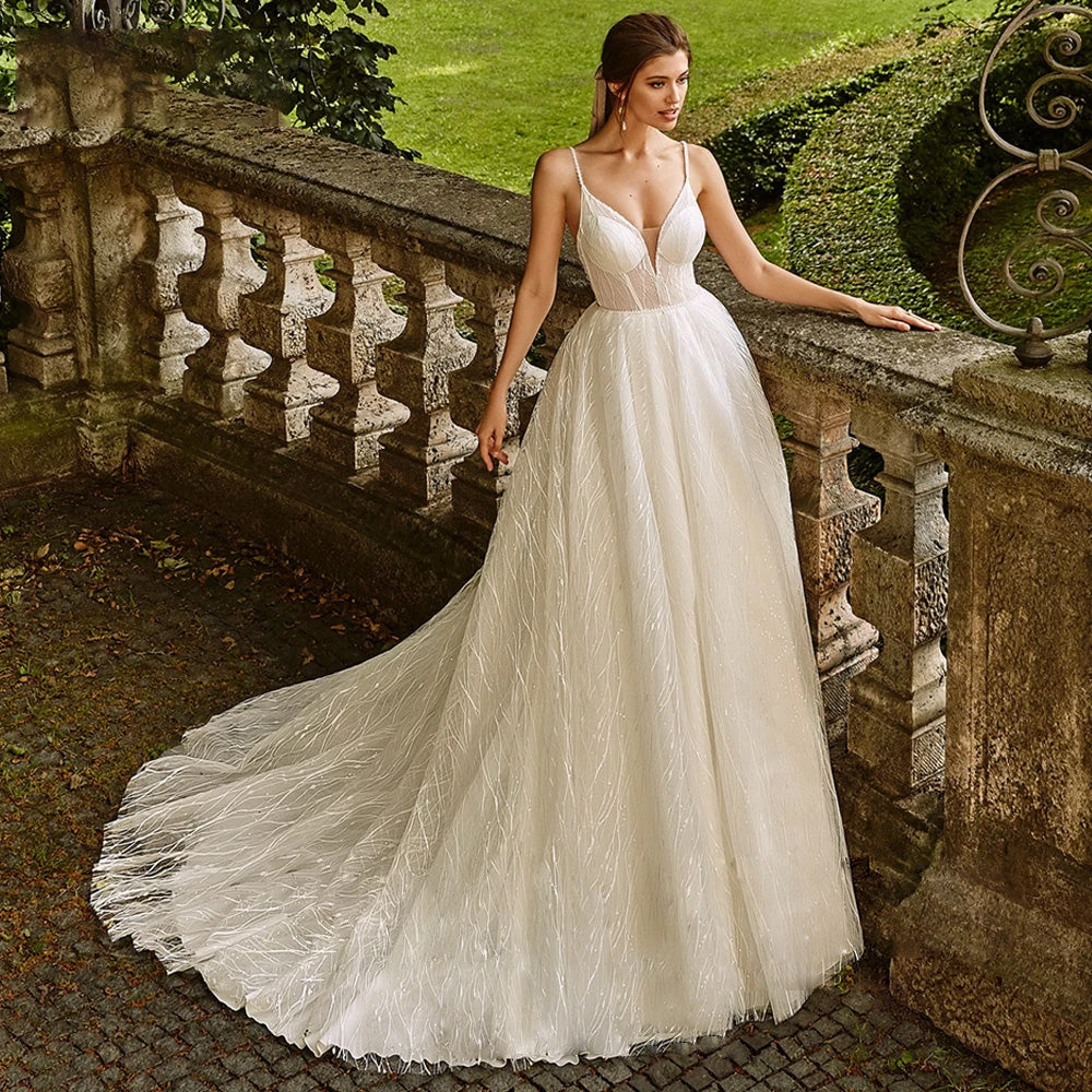 Elegant A-line Style Tulle Wedding Dress Bridal Gown Marriage Beach Dress