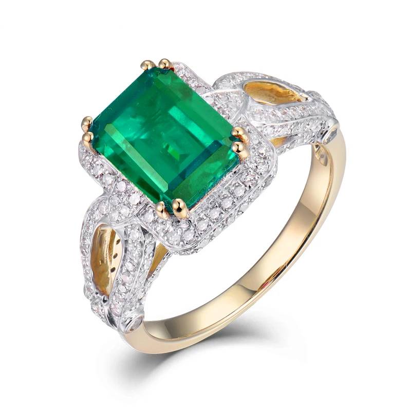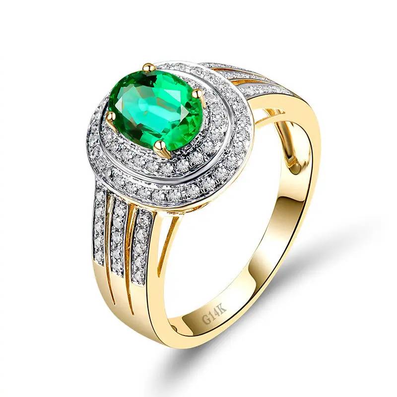 Green Emerald 14Kt Gold Diamond Ring for Women Party Jewelry