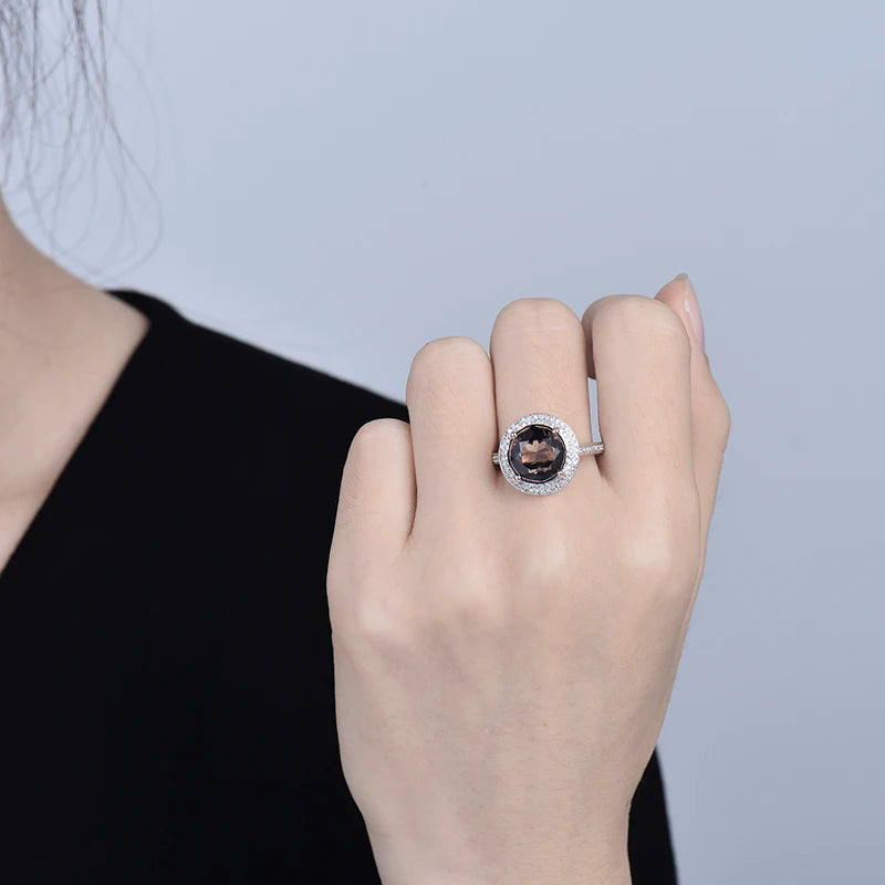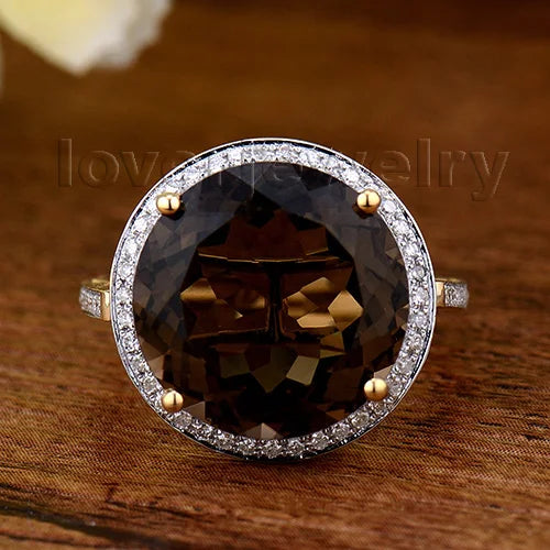 18K Yellow Gold Smoky Topaz & Diamond Ring – Elegant Fashion Jewelry for Women