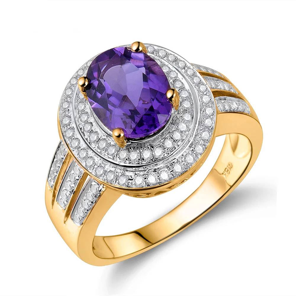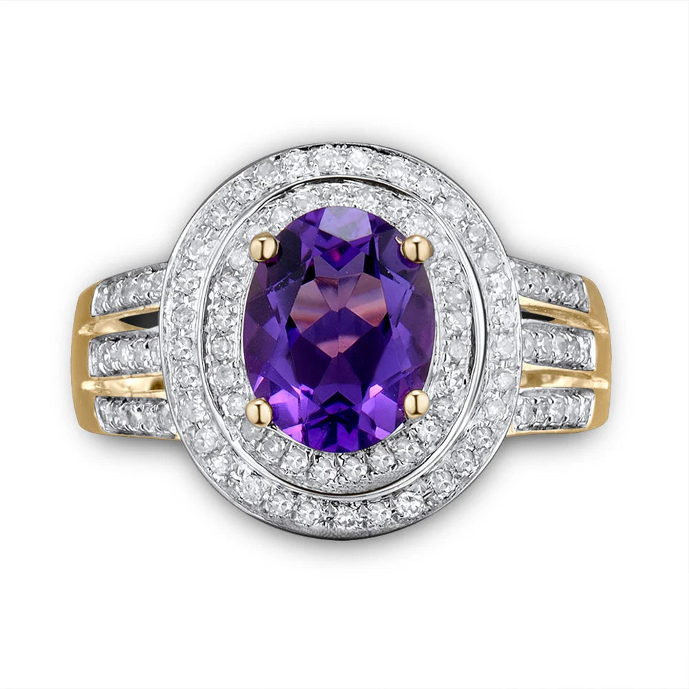 14K Yellow Gold Oval Amethyst & Diamond Ring – Gift for Anniversary