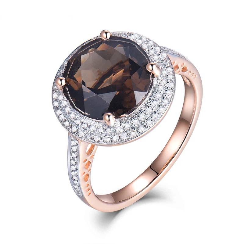 4Ct Smoke Topaz 14kt Rose Gold Diamond Engagement Ring 10x10mm