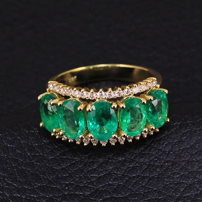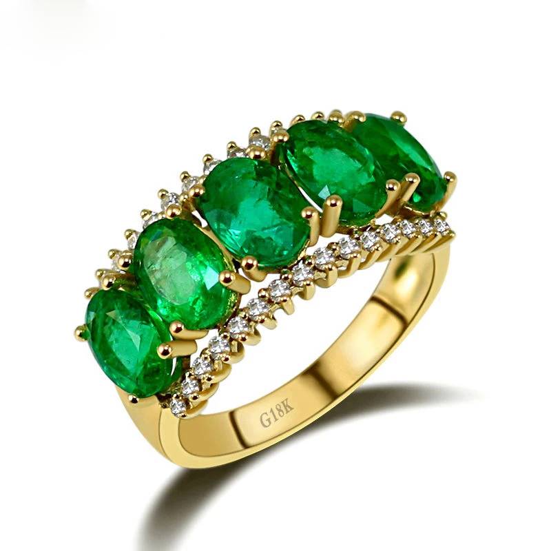 18K Yellow Gold Emerald & Diamond Wedding Ring – Anniversary Gift