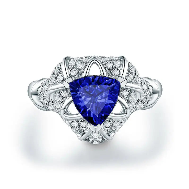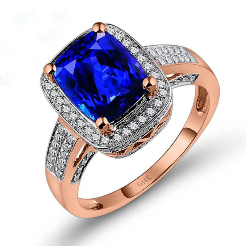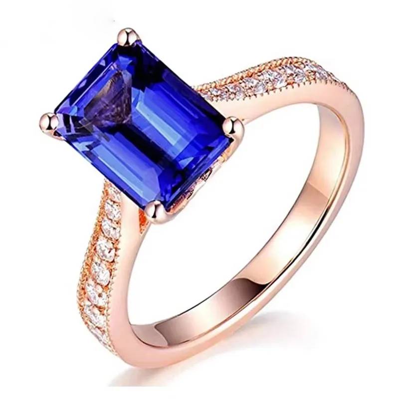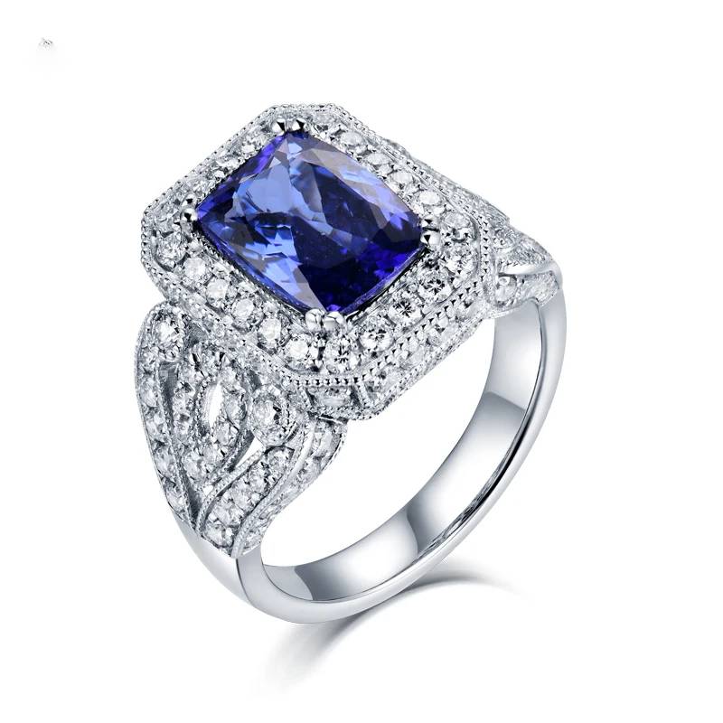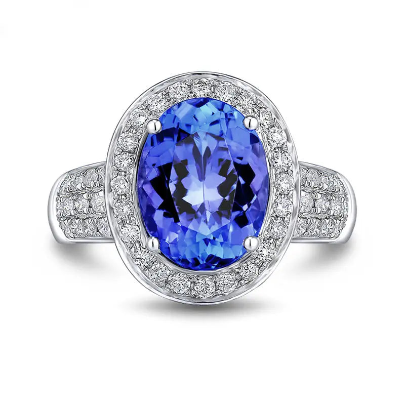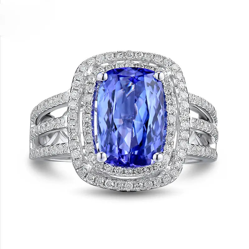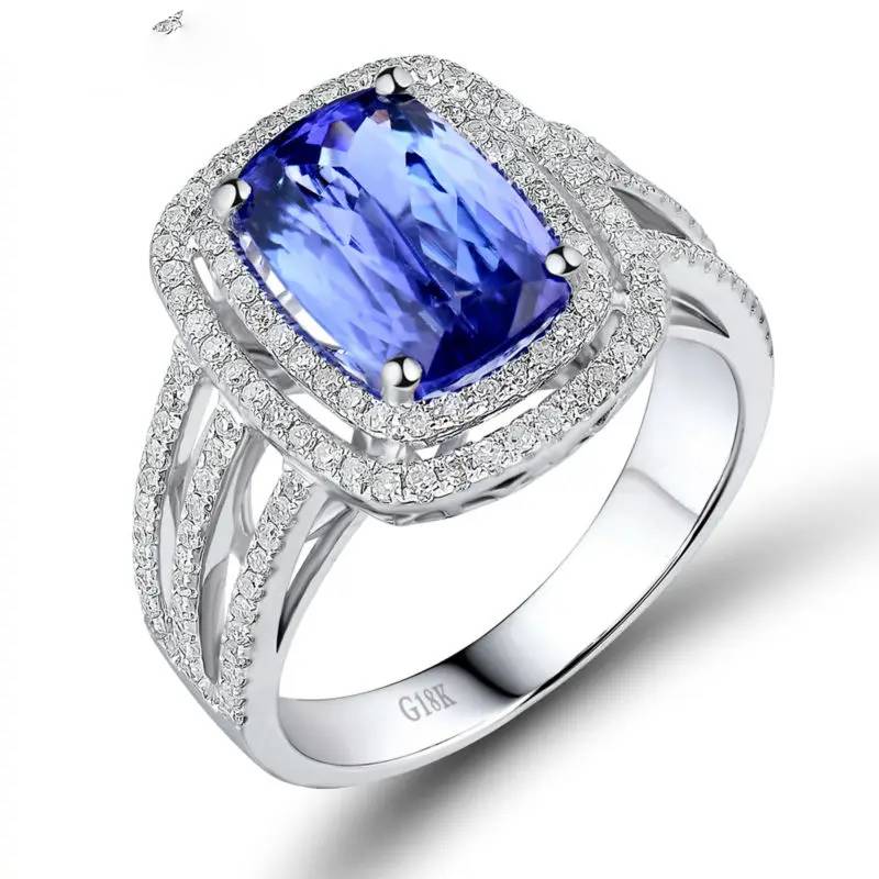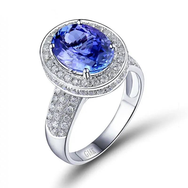 2025 Elegant 18K White Gold Blue Tanzanite Wedding Engagement Ring for Women