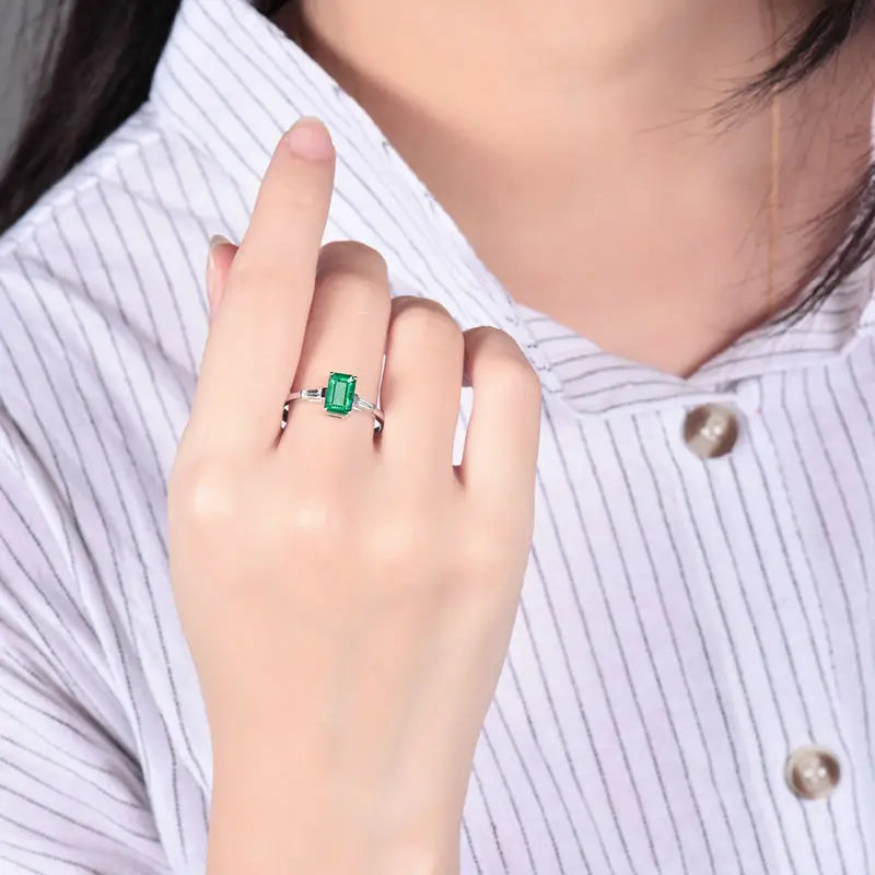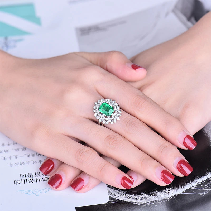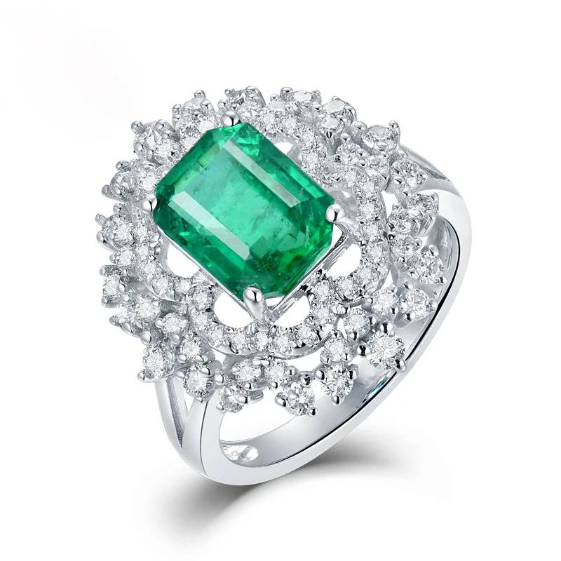 Luxury 18K White Gold Emerald & Diamond Ring for Women