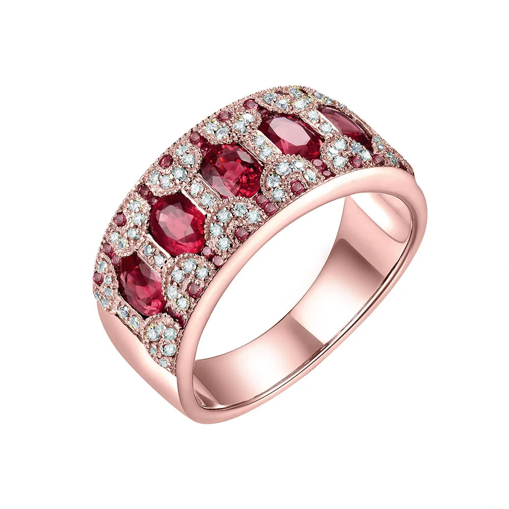 Ruby Oval 4x6mm Gemstone 14K Rose Gold Diamond Wedding Ring for Women
