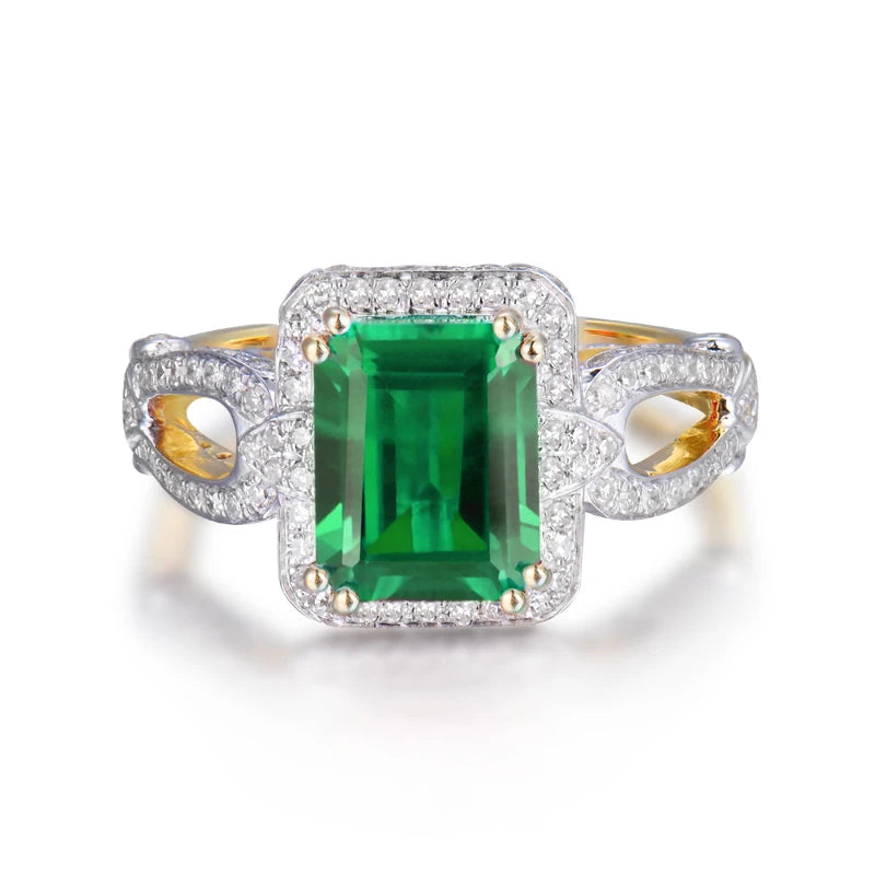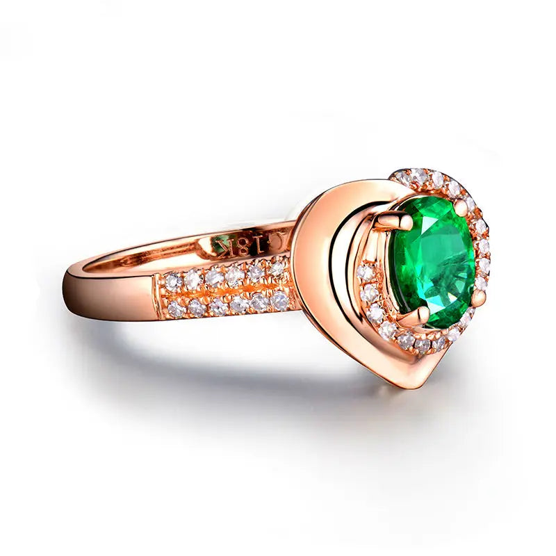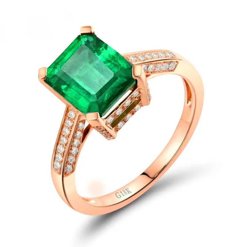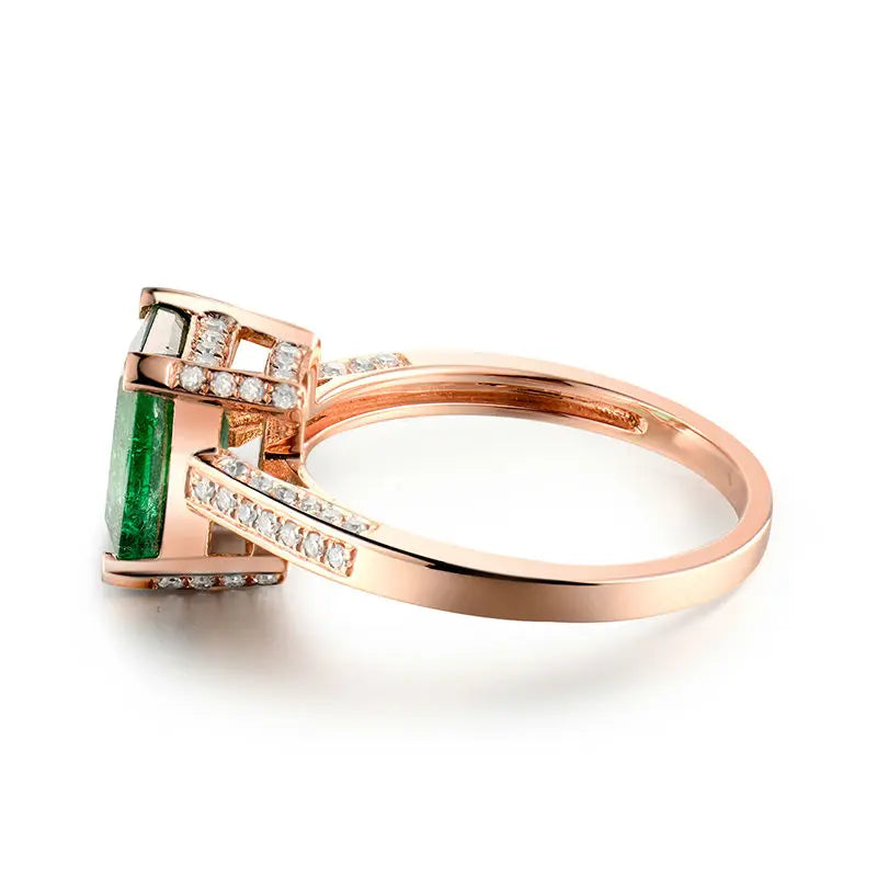 18K Rose Gold 2.1Ct Emerald & Diamond Engagement Ring for Women