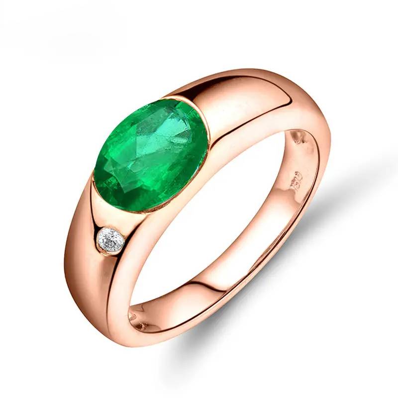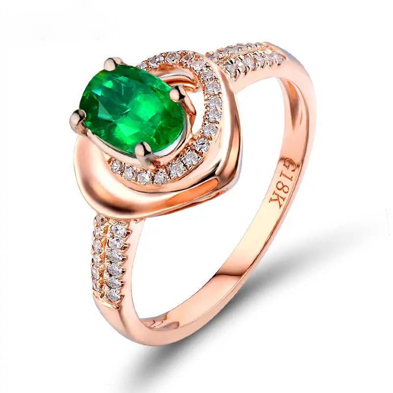 Oval 6x8mm Natural Zambia Emerald Ring 18kt Rose Gold with Real Diamonds