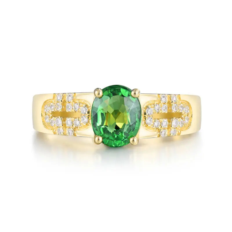 14K Yellow Gold Diamond & Green Tsavorite Wedding Ring for Women