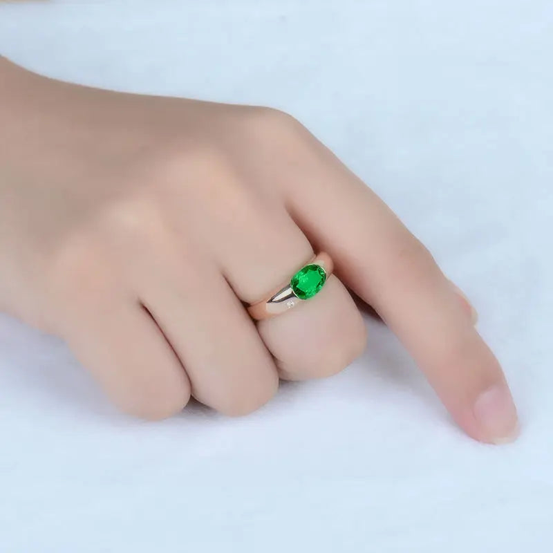 Women's 18Kt Rose Gold Emerald Ring 4x6mm for Engagement & Anniversary