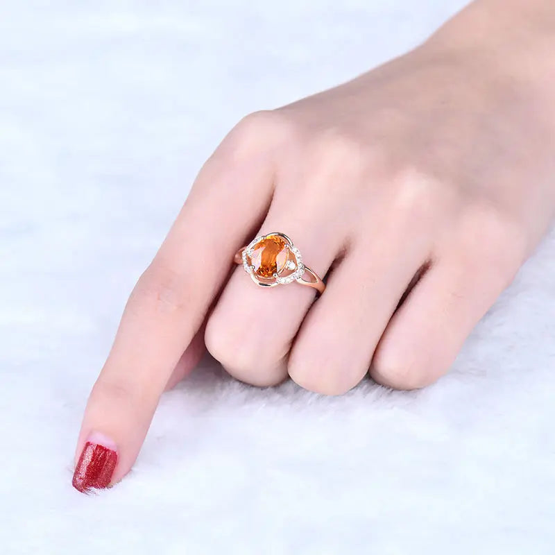 Natural Yellow Sapphire 14Kt Rose Gold Ring with Genuine Diamonds for Women