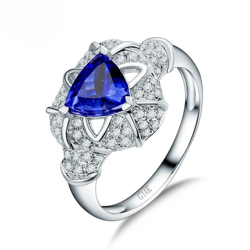 Blue Tanzanite 14Kt White Gold Diamond Ring for Women Anniversary Jewelry