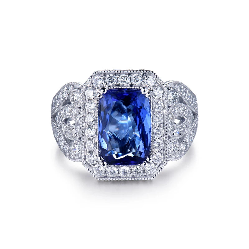 Princess Diana Flower 18Kt White Gold Blue Tanzanite Wedding Ring for Women