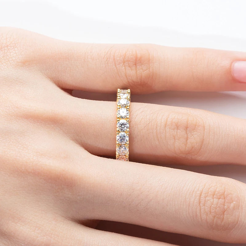 Celebrate eternal love with our 3.5mm Round Moissanite Wedding Band, crafted in 925 Sterling Silver with a vibrant yellow hue. Elegant and durable, this timeless piece adds brilliance and sophistication to weddings or everyday wear.