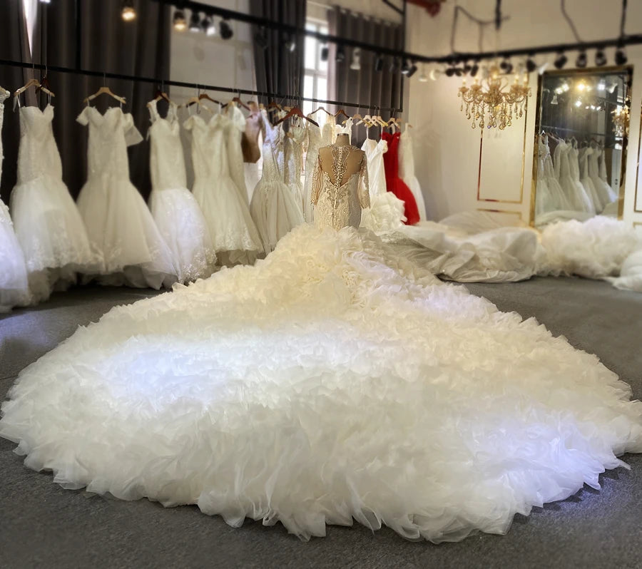Luxury Africa Bridal Long Sleeve Ruffle 2-in-1 Mermaid Wedding Dress