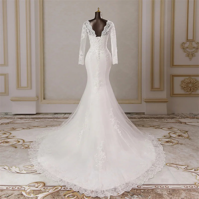 Sexy Long Sleeves Applique Mermaid Wedding Dress Bridal Gown