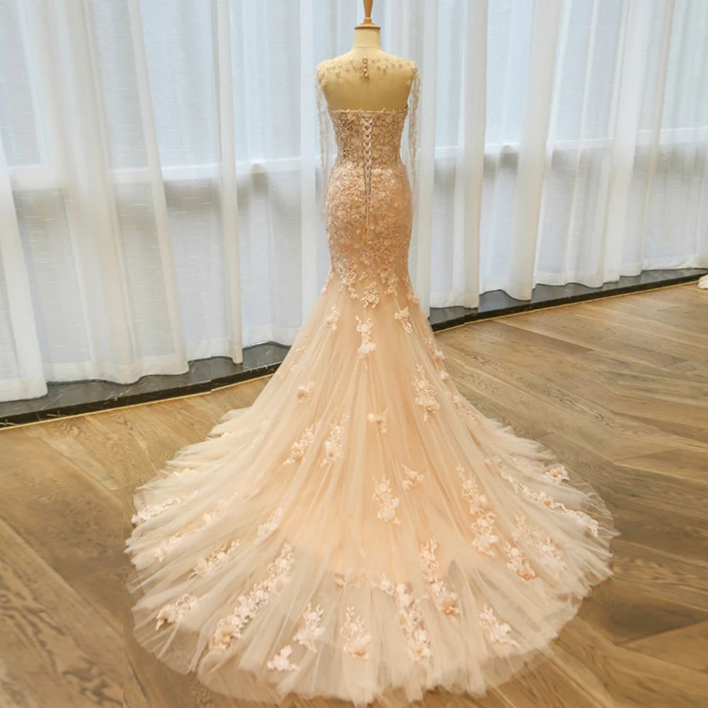 Elegant Mermaid Wedding Dress with Beading, Appliques, and Floral Shawl