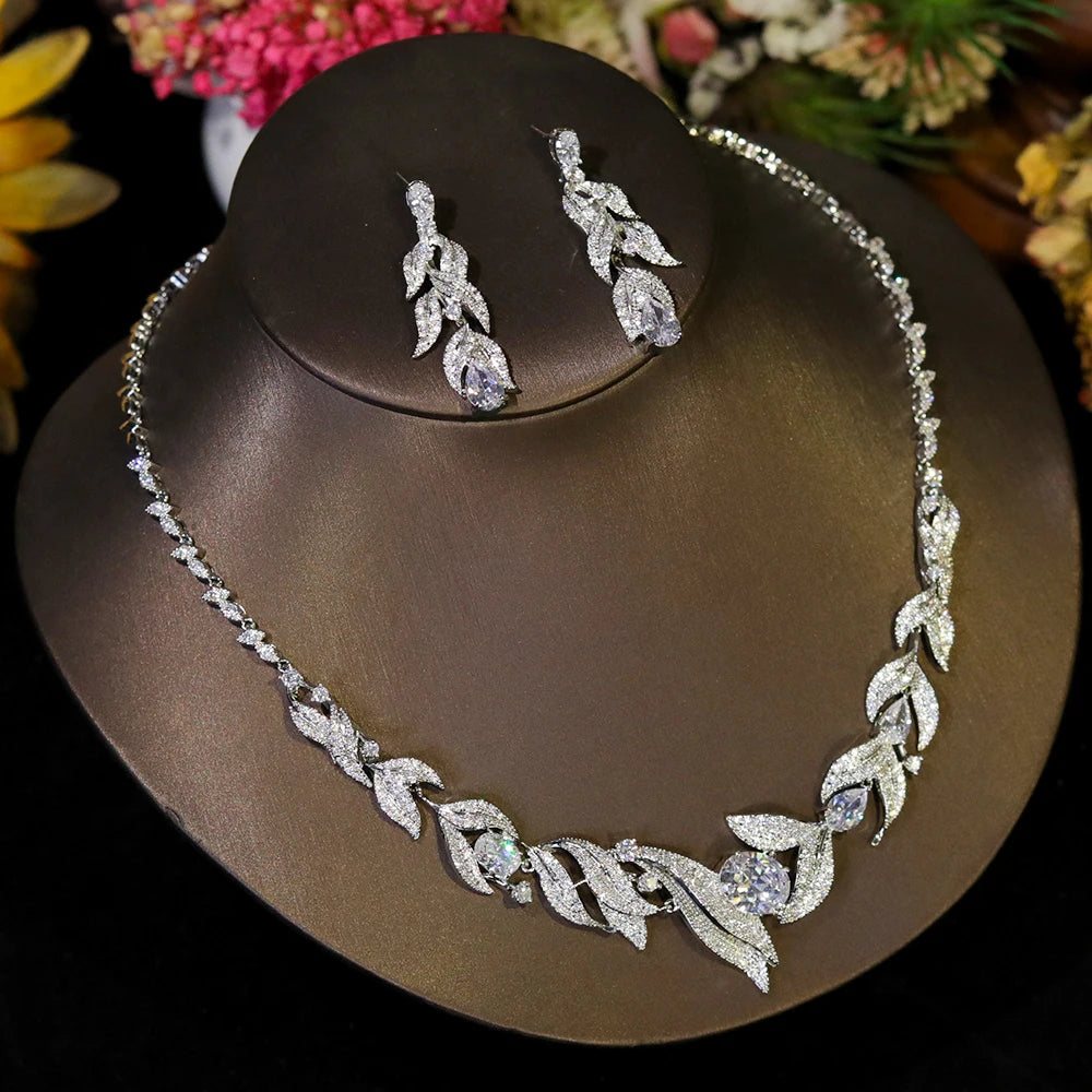 Luxury Zircon Bridal Jewelry Set – Crystal Dubai Wedding Necklace & Earrings