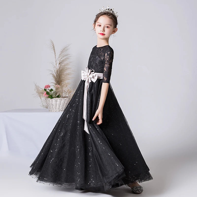 Let your little one sparkle in style with our Black Tulle Sparkly Dress for Girls. Featuring delicate half sleeves and dazzling details, this enchanting gown is perfect for birthdays, parties, and special occasions.