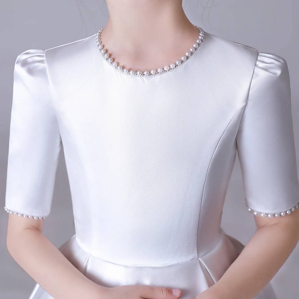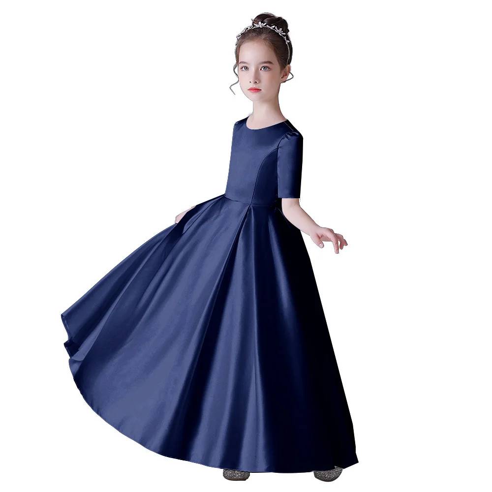Blue Tulle Sequin Flower Girl Dress with Bow – O-Neck Kids Birthday Princess Gown