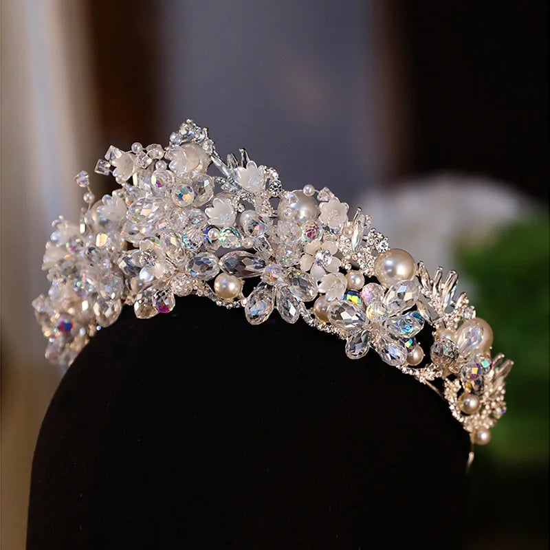 Elevate your bridal look with this elegant crystal and pearl tiara. Perfect for weddings, parties, and pageants, it adds a touch of luxury and charm.