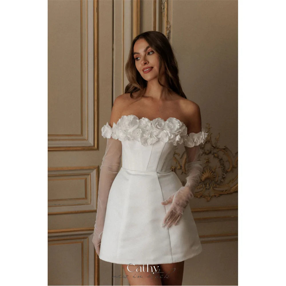 Make a stunning statement with our Elegant Short White Mermaid Wedding Dress, featuring a modern silhouette, detachable sleeves, and delicate floral details that blend romance and style. Crafted from luxurious fabrics, this versatile gown offers comfort and elegance for any celebration.