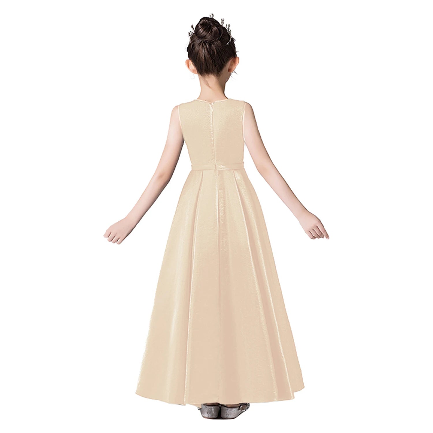 This Champagne Elegant Sleeveless Party Dress combines timeless sophistication with comfort, perfect for birthdays, performances, and special occasions. Its flowing skirt, soft fabric, and graceful design make every twirl magical, helping your little one feel like a true princess.