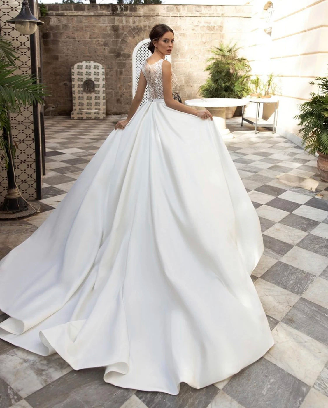 Elsi John’s country wedding dress collection blends timeless romance with modern elegance in luxurious satin A-line ball gowns. Each gown is a statement of love, grace, and exquisite craftsmanship.