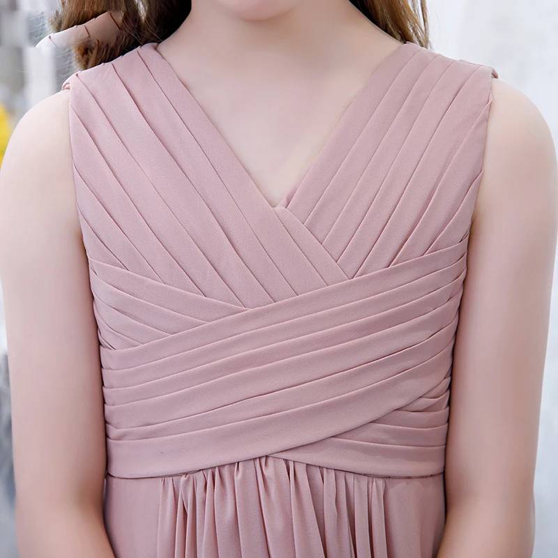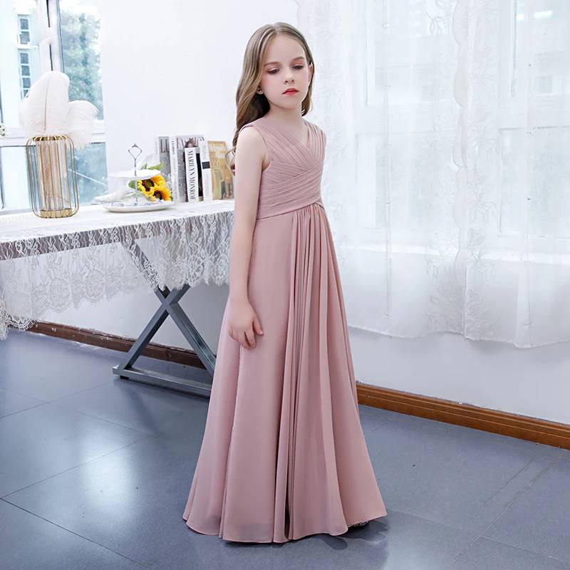 Criss-Cross Pleated Chiffon Flower Girl Dress V Neck Sleeveless A-Line First Communion Gown