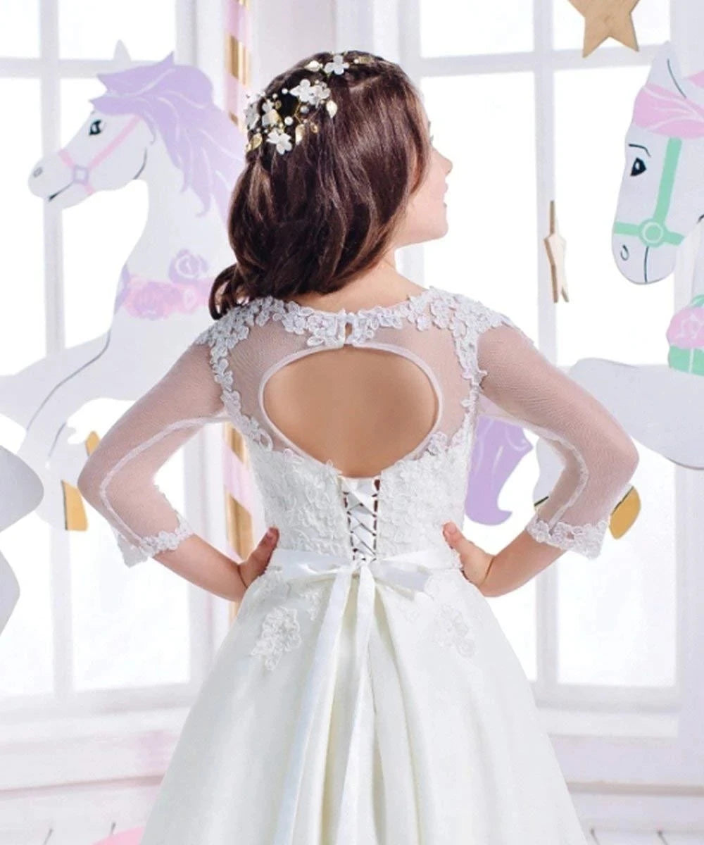 Let your little one sparkle in Elsi John's Crystal Sequin Lace Applique Flower Girl Dress, adorned with delicate lace, shimmering sequins, and a flowing skirt for timeless elegance. Perfect for First Communion or special occasions, it’s crafted to create unforgettable memories.