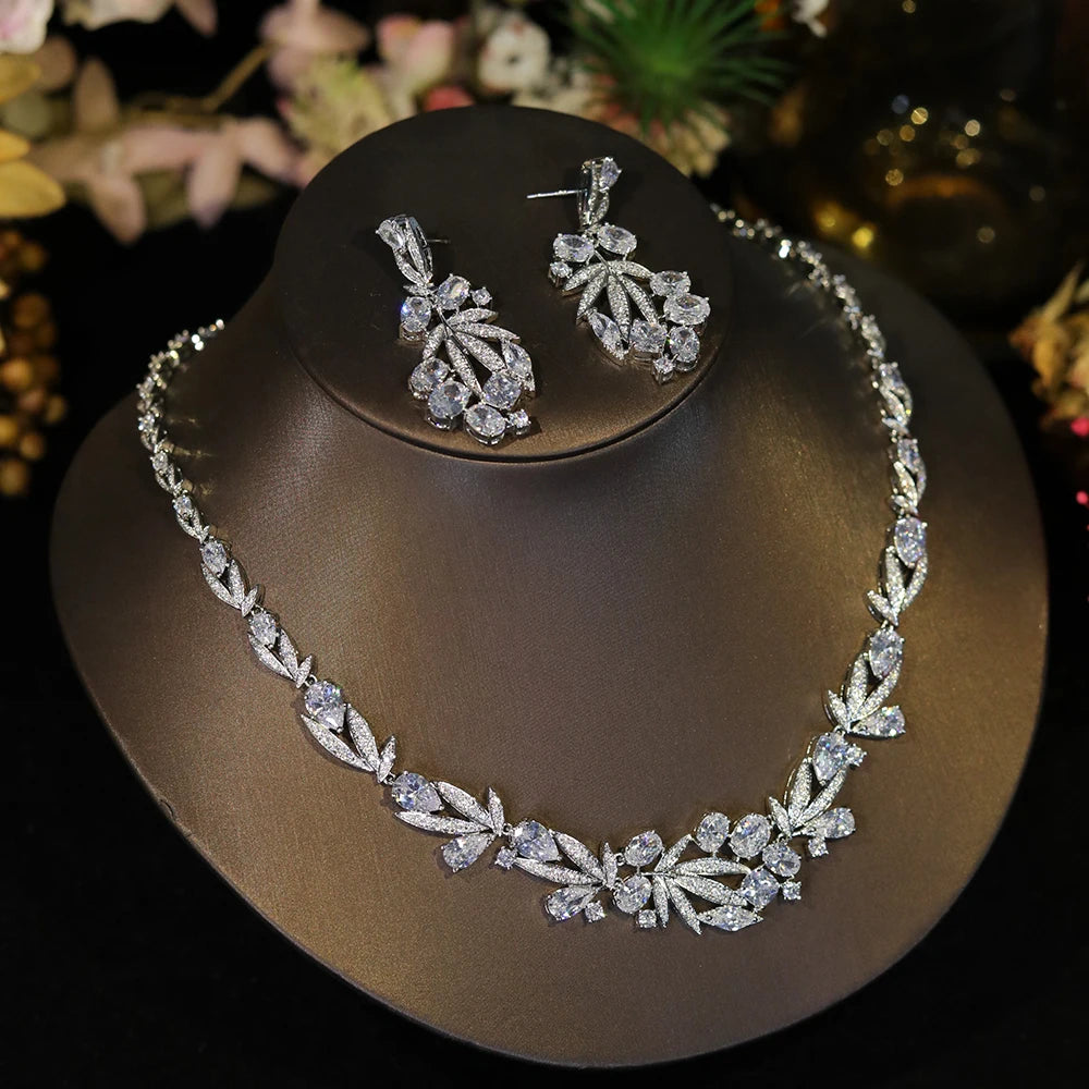 Cubic Zirconia Choker Necklace & Earrings Set for Bridal Wedding or Party