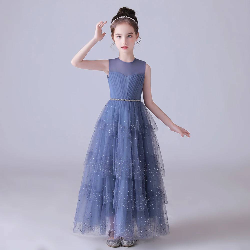 Dusty Blue Tulle Flower Girl Dress Sleeveless A-Line Floor Length Princess Gown