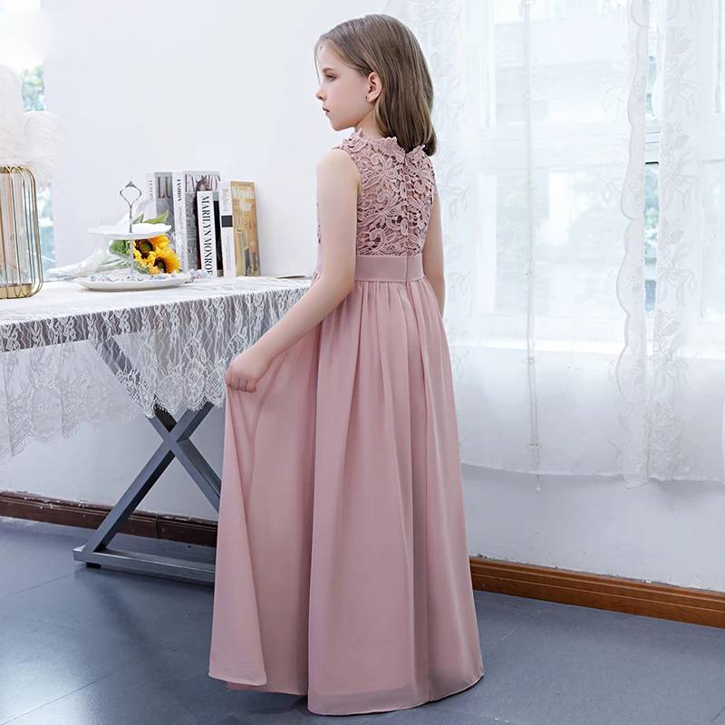 Dusty Rose Long Chiffon Flower Girl Dress Junior Bridesmaid or Birthday Gown