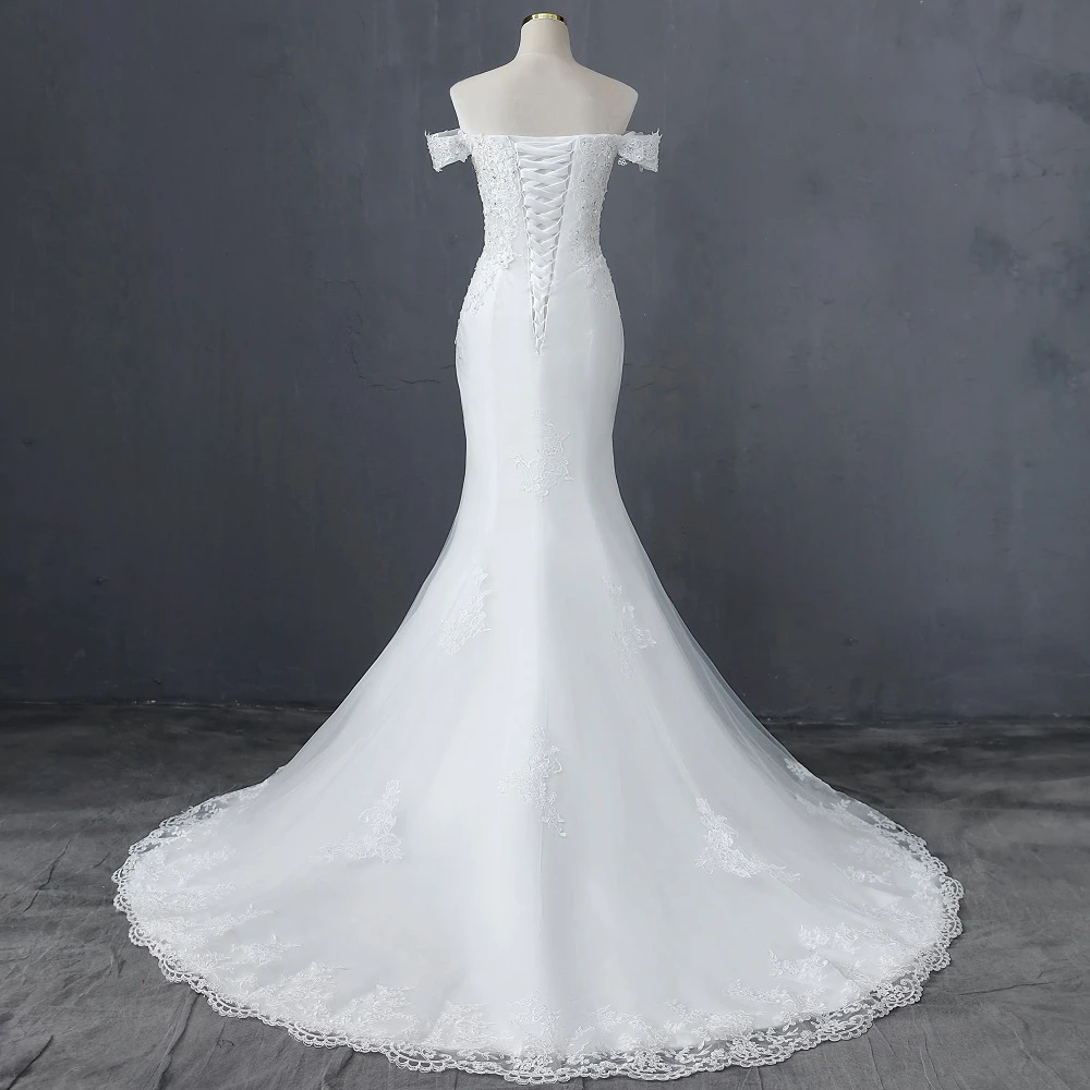 Elegant Boat Neck and Sexy Waist Style Mermaid Wedding Dress
