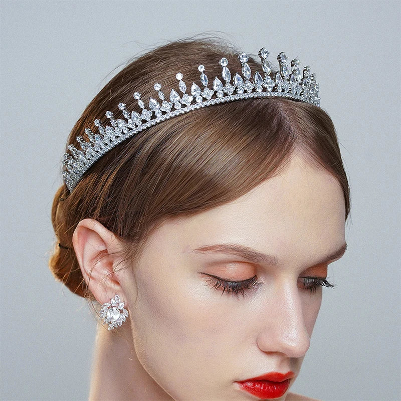 This elegant crystal tiara adds a sparkling touch to bridal and graduation looks. Featuring shiny zircon stones, it's perfect for a timeless, graceful style.