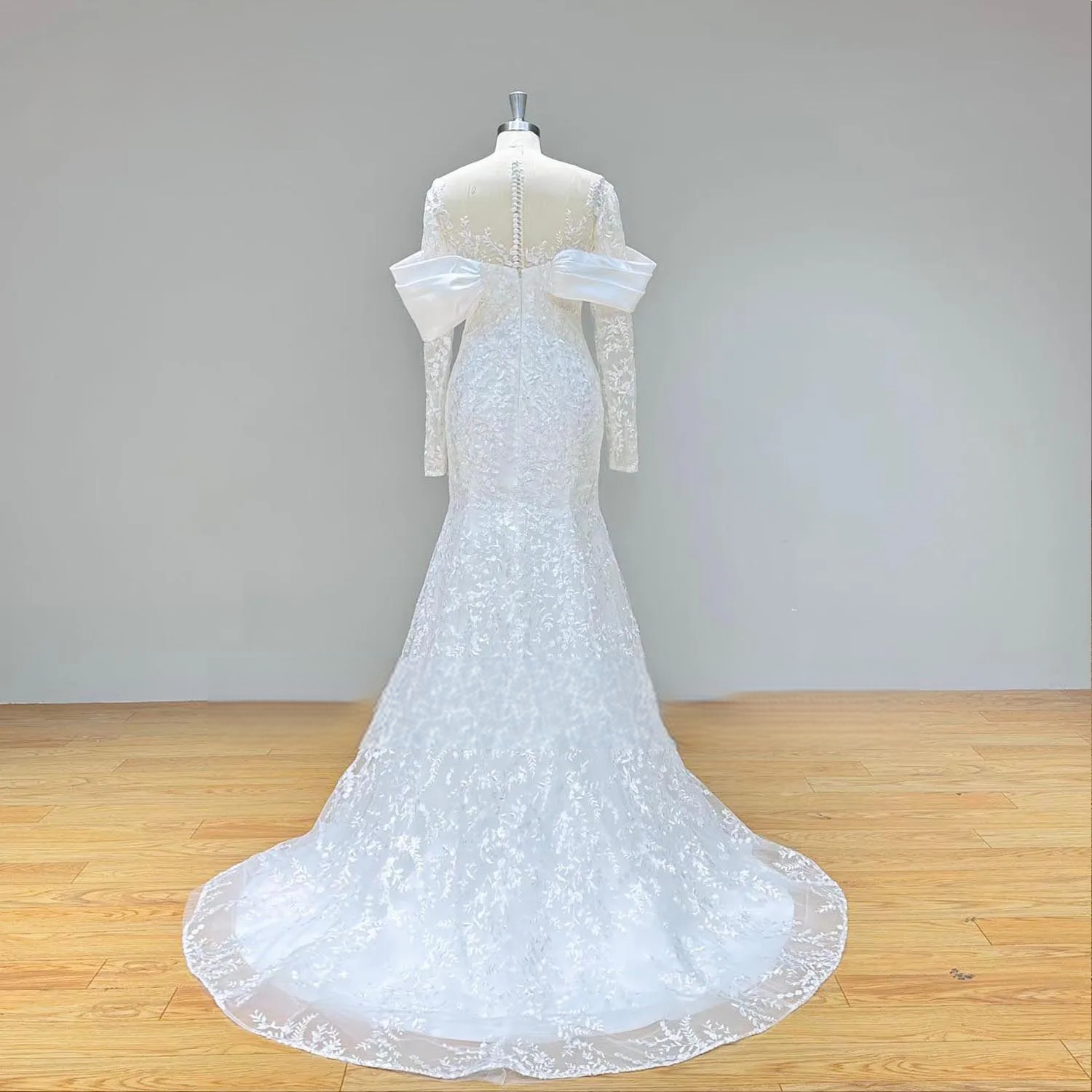 Embrace timeless elegance in this lace mermaid wedding dress, featuring a graceful O-neck, romantic long sleeves, and intricate lace detailing that enhances your natural beauty. Perfect for formal ceremonies or evening receptions, this flattering gown offers classic charm with modern sophistication.