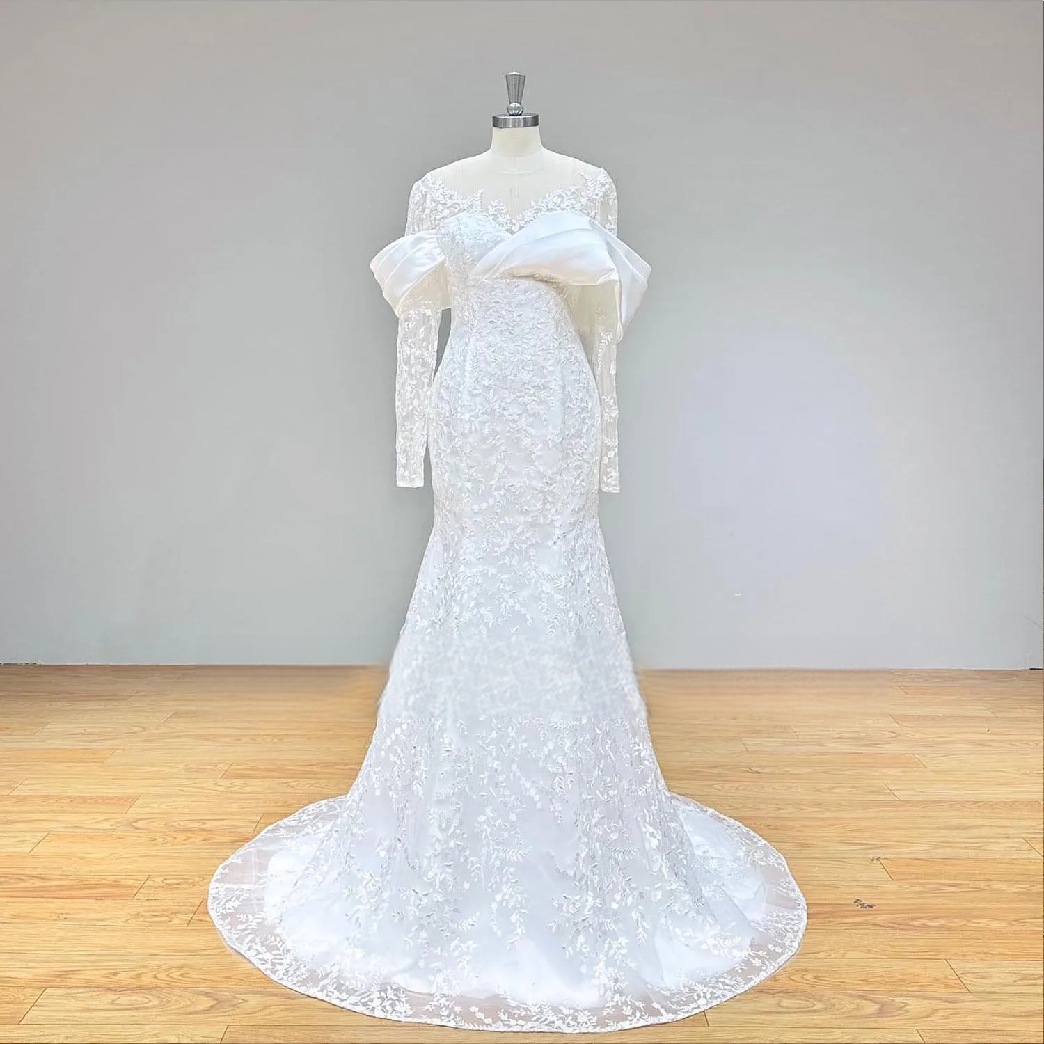 Elegant Lace Mermaid Wedding Dress with O-Neck and Long Sleeves