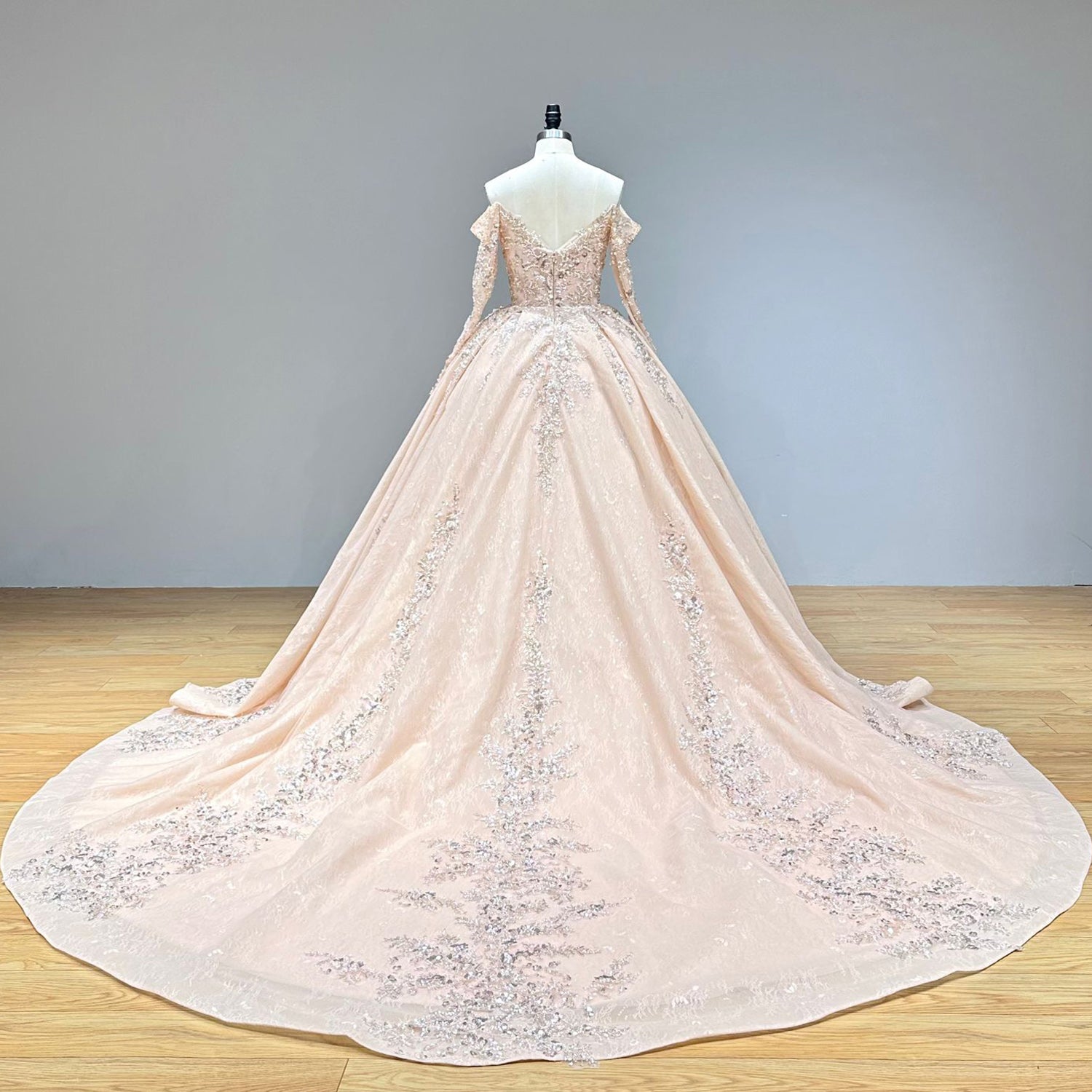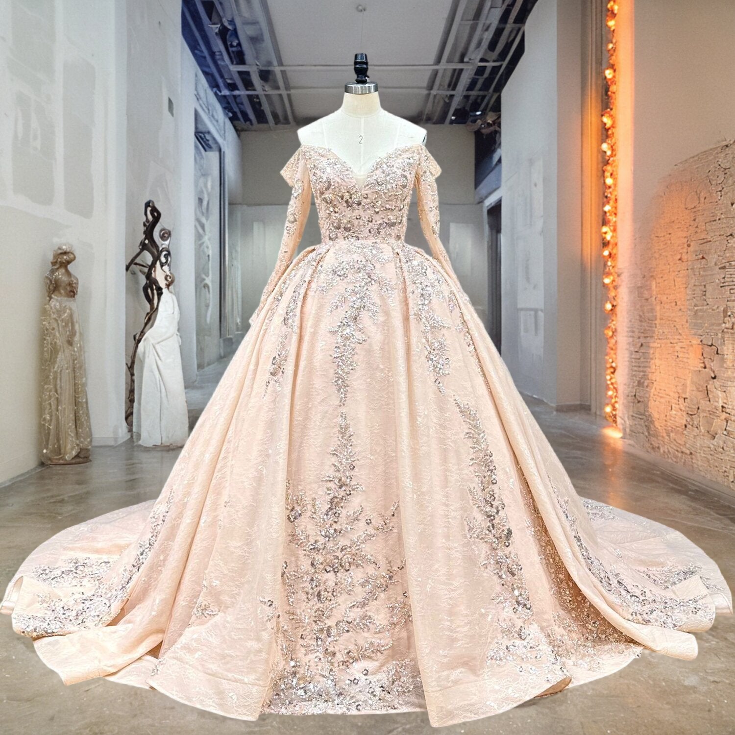 This Elegant Long Sleeve Wedding Dress combines beaded lace and a sweetheart neckline for timeless romance and modern elegance. Its sophisticated design highlights the bride’s figure, ensuring comfort and grace on her special day.