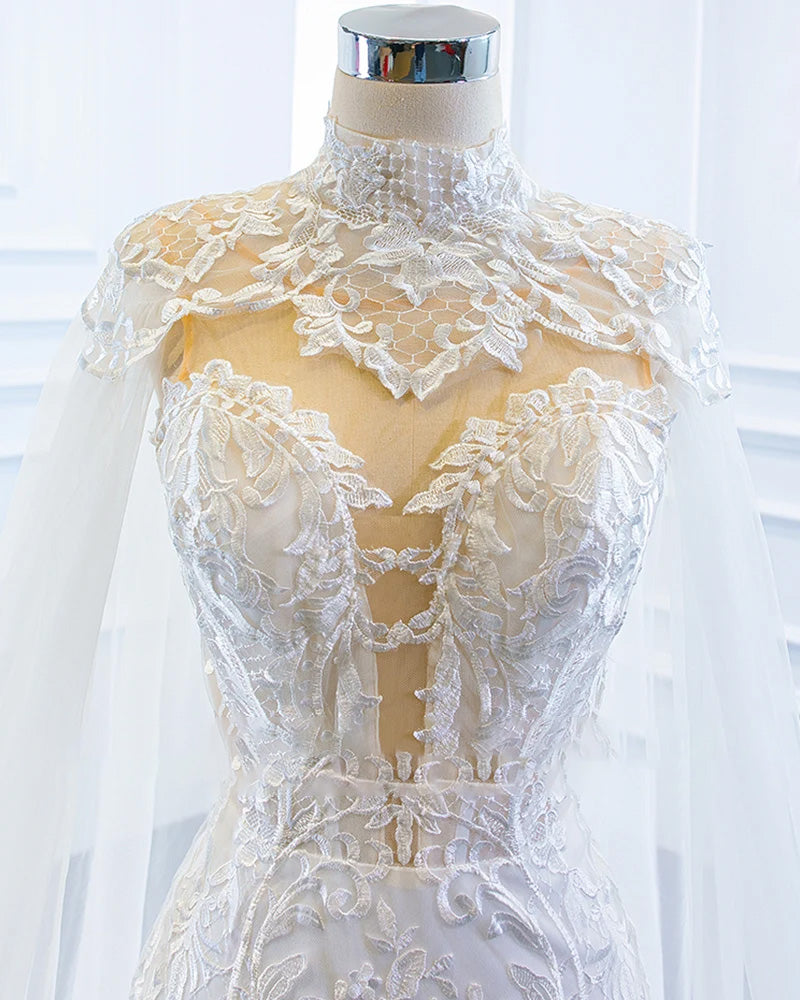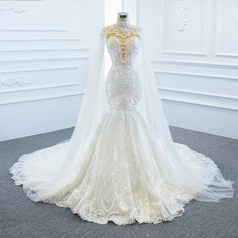 Elegant Mermaid Wedding Dress with Shawl Off the Shoulder Luxury Bridal Dress