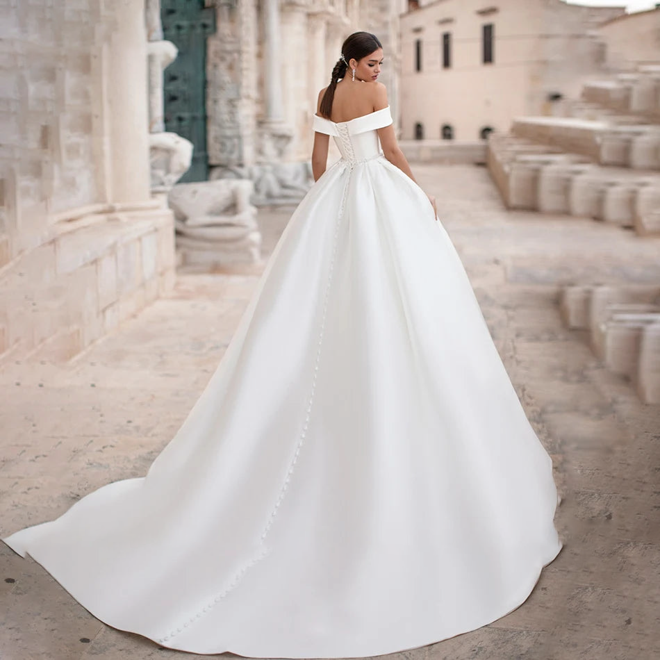 Make your wedding day unforgettable with the Elegant Satin Wedding Dress, featuring cap sleeves, a sweetheart neckline, and crystal sashes. The luxurious satin fabric and lace-up back create a flawless princess silhouette with timeless elegance.