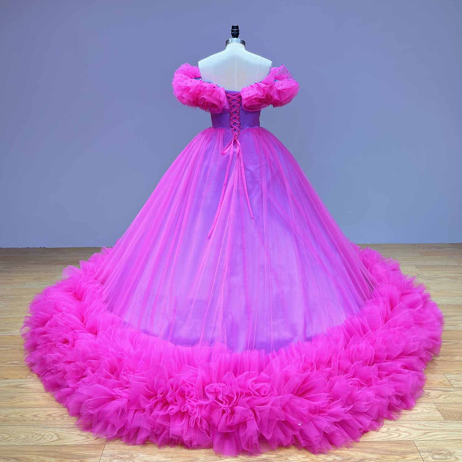 Make your wedding day truly unforgettable with this Fashion Pearls Tulle Ball Gown, featuring an elegant off-shoulder neckline and intricate lace appliques that exude timeless romance. The voluminous tulle skirt, delicate pearl details, and lace-up back combine classic elegance with modern flair for a fairytale bridal look.