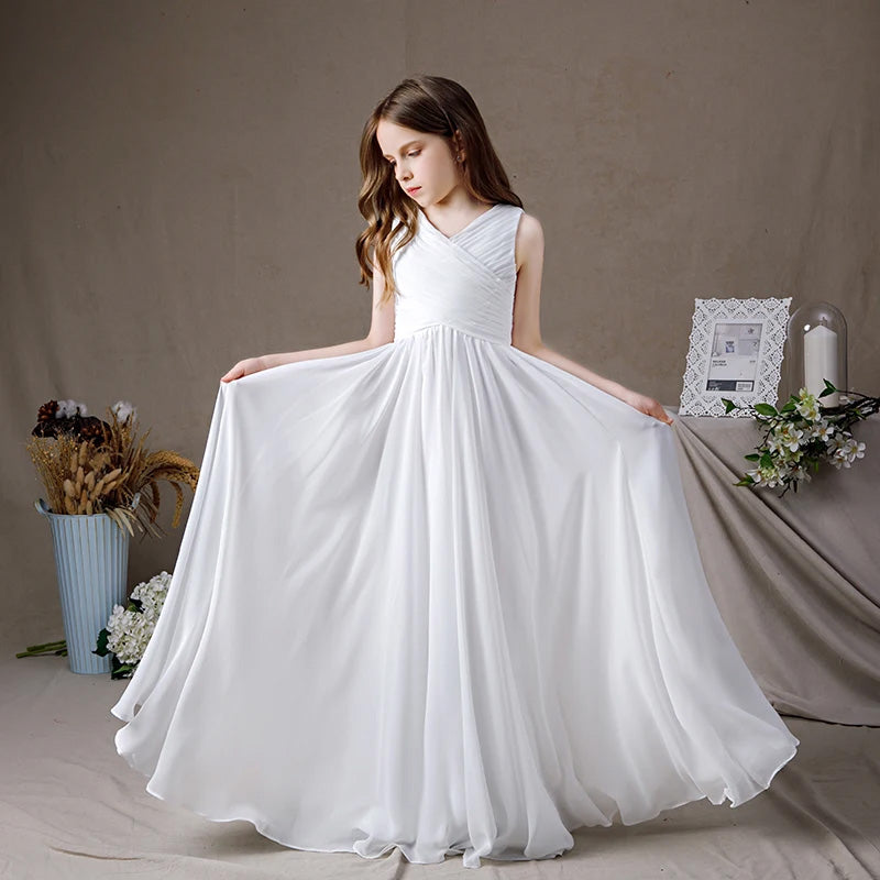 Floor Length Sleeveless Flower Girl White Dress