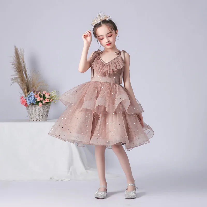 Let your little princess shine in this elegant Flower Girl Dress with soft ruffles and a detachable train, perfect for weddings and parties. The flowing silhouette and high-quality fabric ensure comfort, style, and unforgettable memories for any special occasion.