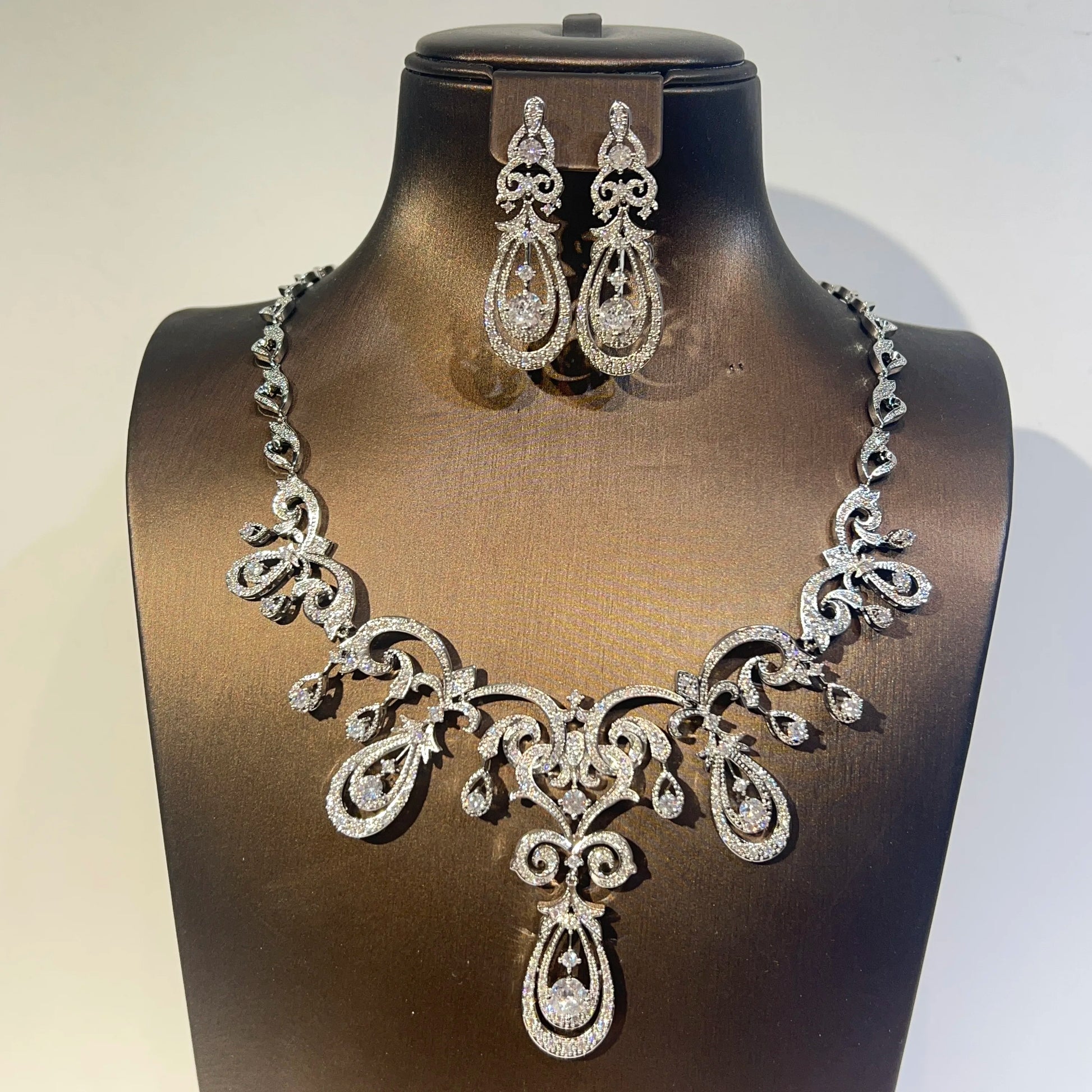 Geometric Bridal Necklace Set with Cubic Zirconia for Women