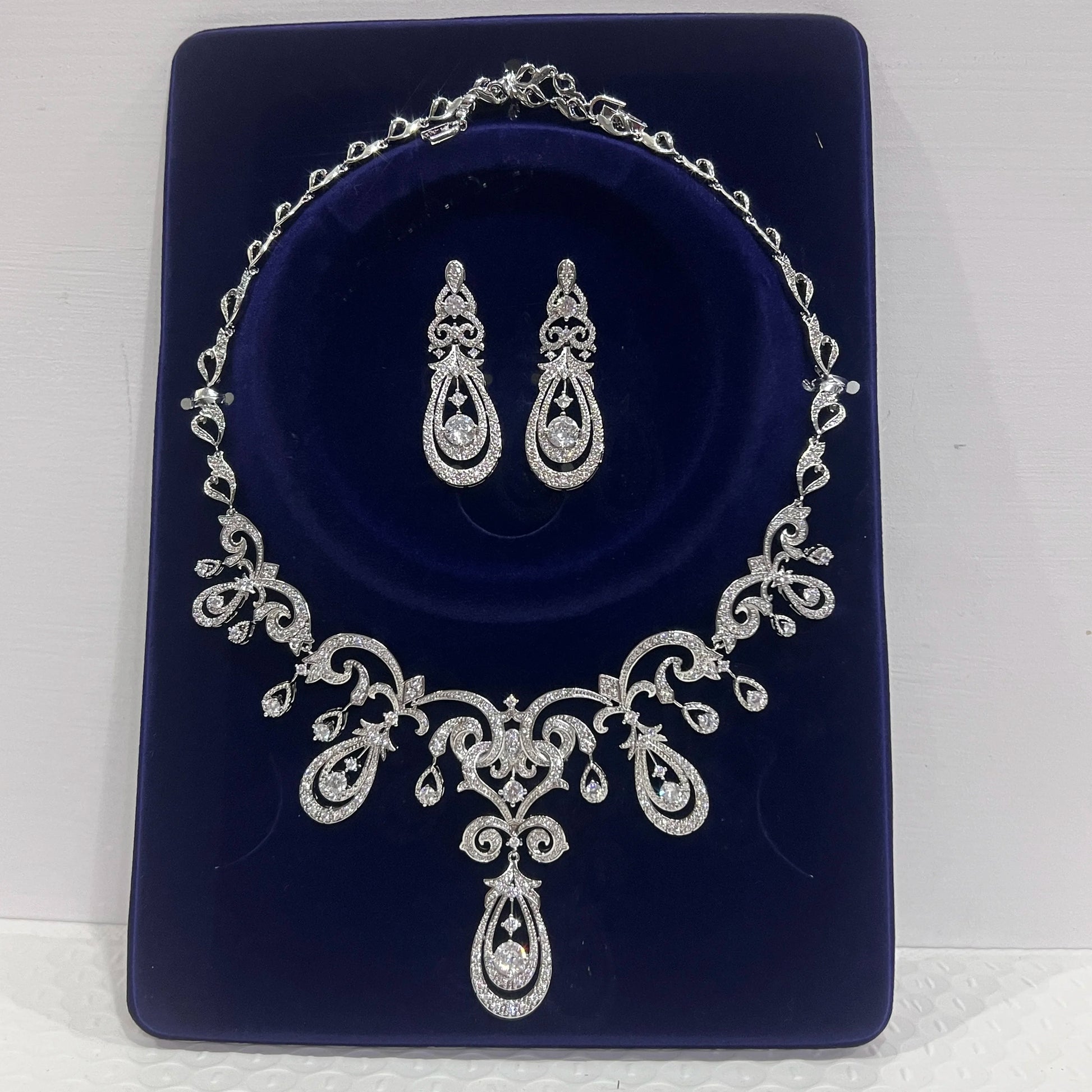 Elevate your look with this geometric bridal necklace set featuring high-quality cubic zirconia. Perfect for weddings, parties, and elegant occasions.