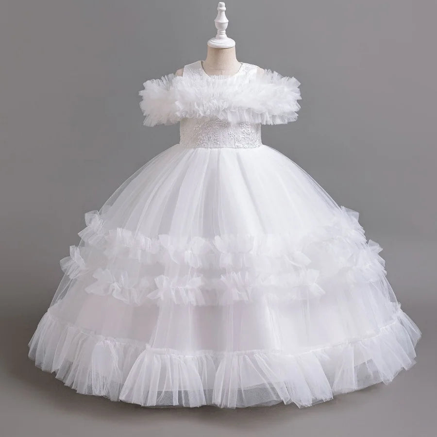 Let your little girl shine in this Puff Sleeve Off-Shoulder Princess Dress, perfect for ages 4–12. Featuring a charming bow and airy mesh skirt, it blends comfort and elegance for birthdays, parties, and special occasions.