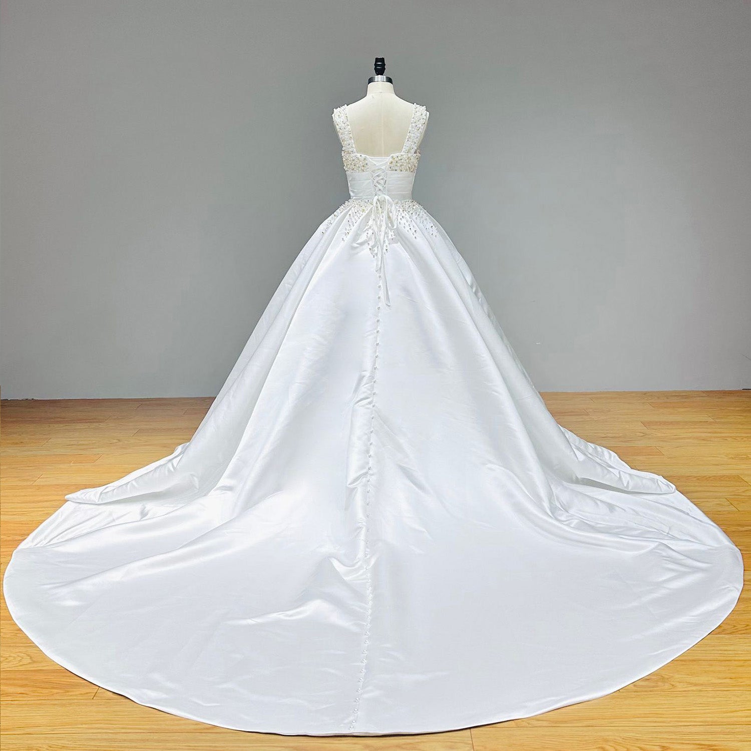 Gorgeous Crystal Satin Ball Gown Wedding Dress with Detachable Straps and Corset Back